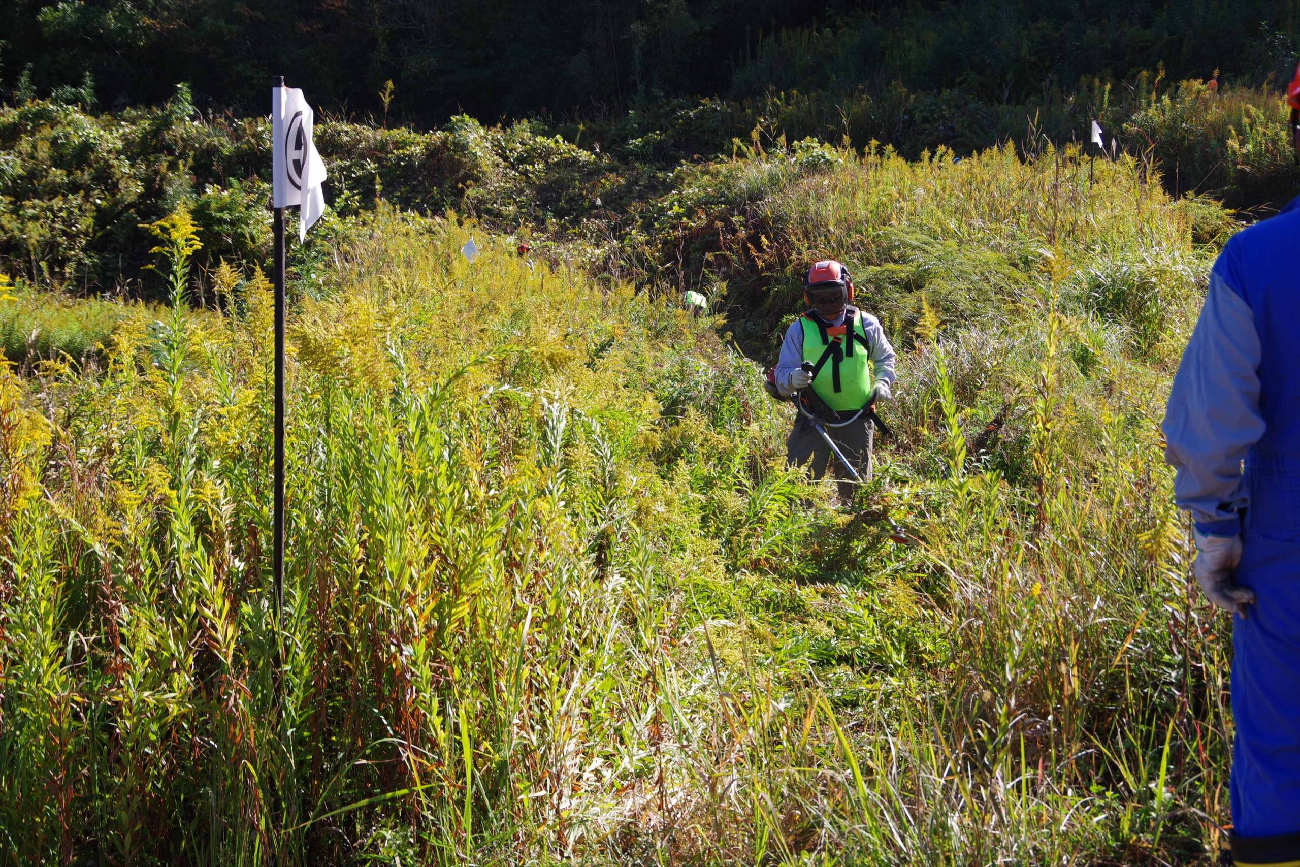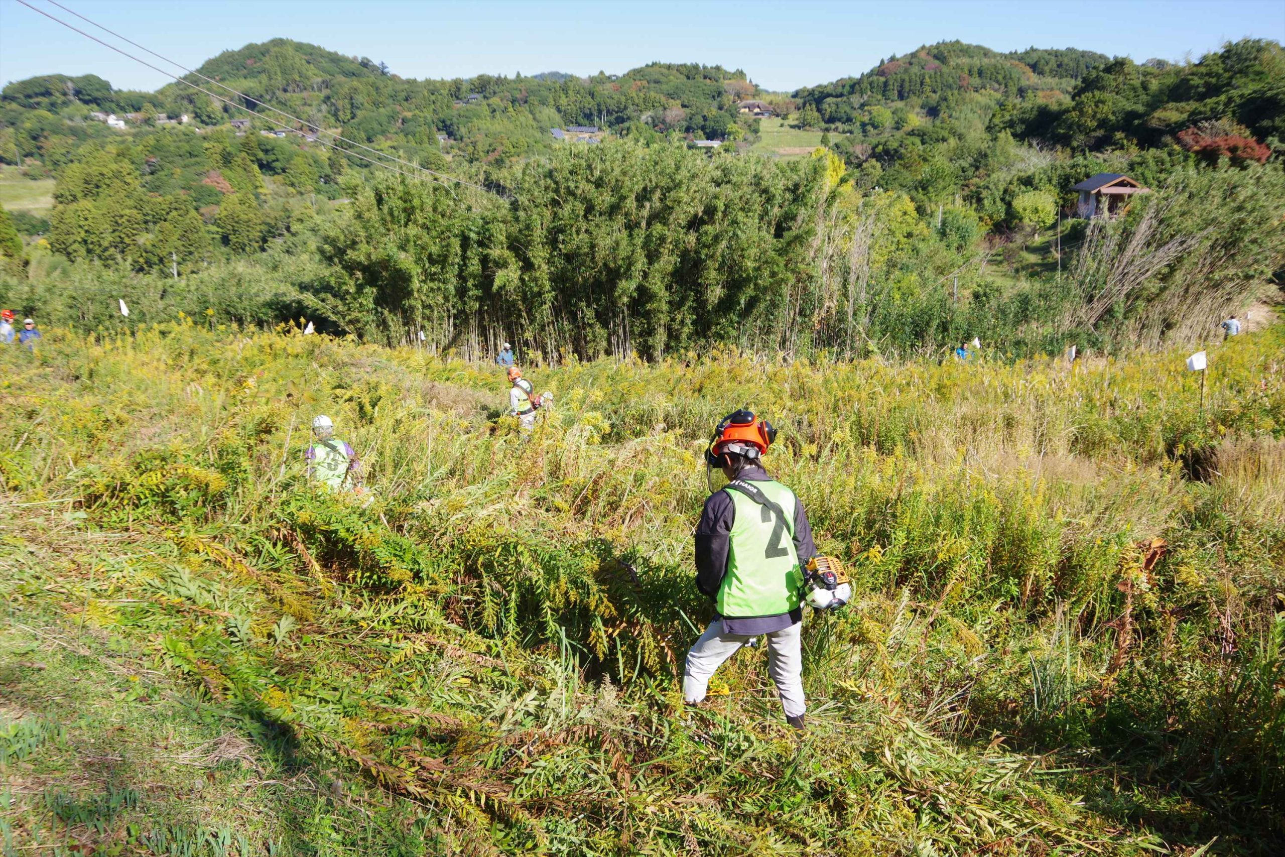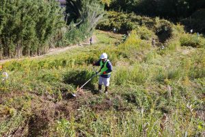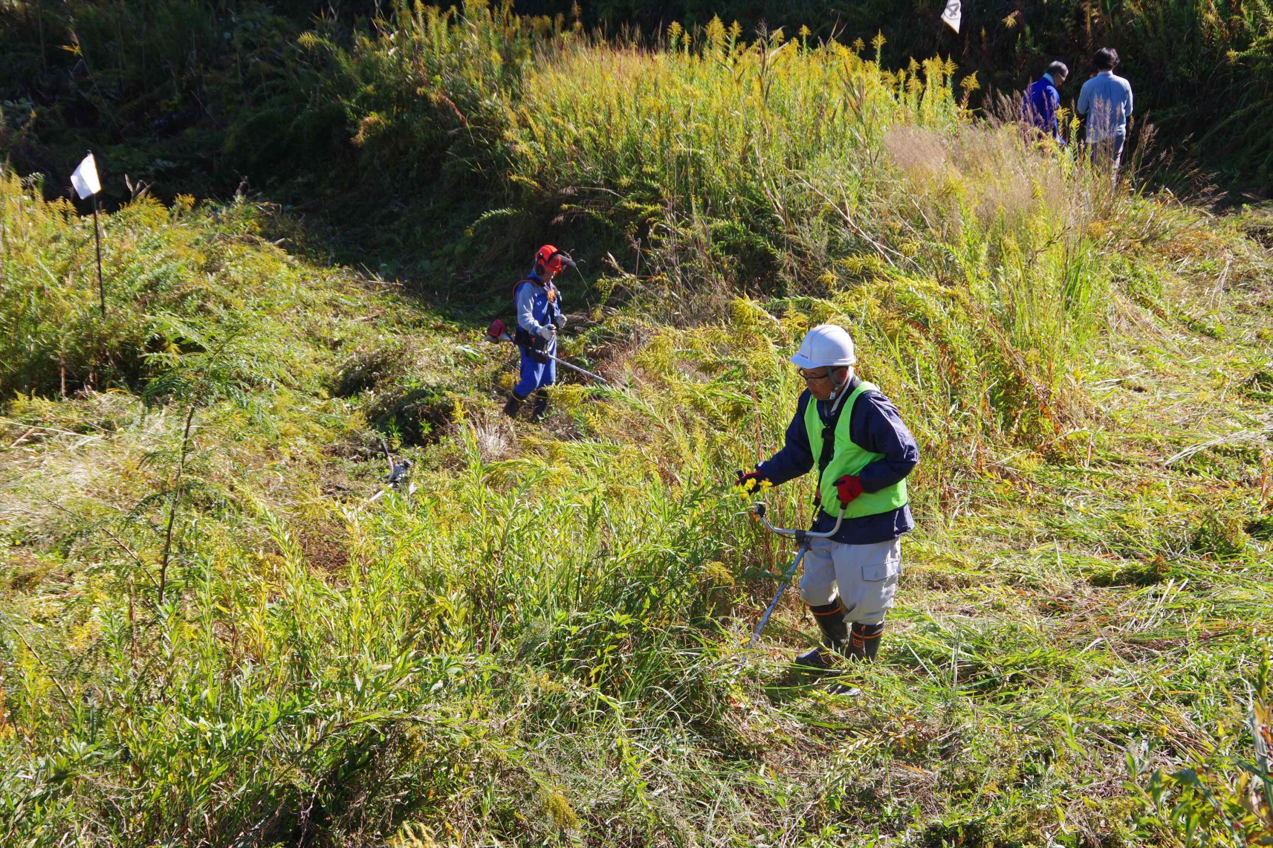 一般参加枠では男女22歳~77歳と、今年も幅広い層の方々が参加してくれました。元気よく育ってしまったセイタカアワダチソウを中心とした草を、チームの2人が交代で刈っていきます。約4000平米の草刈りを1時間ほどで終えました。