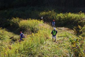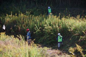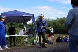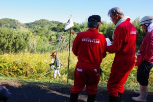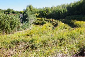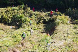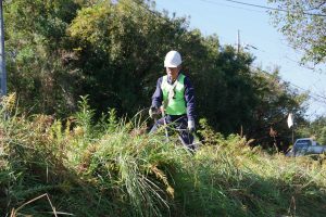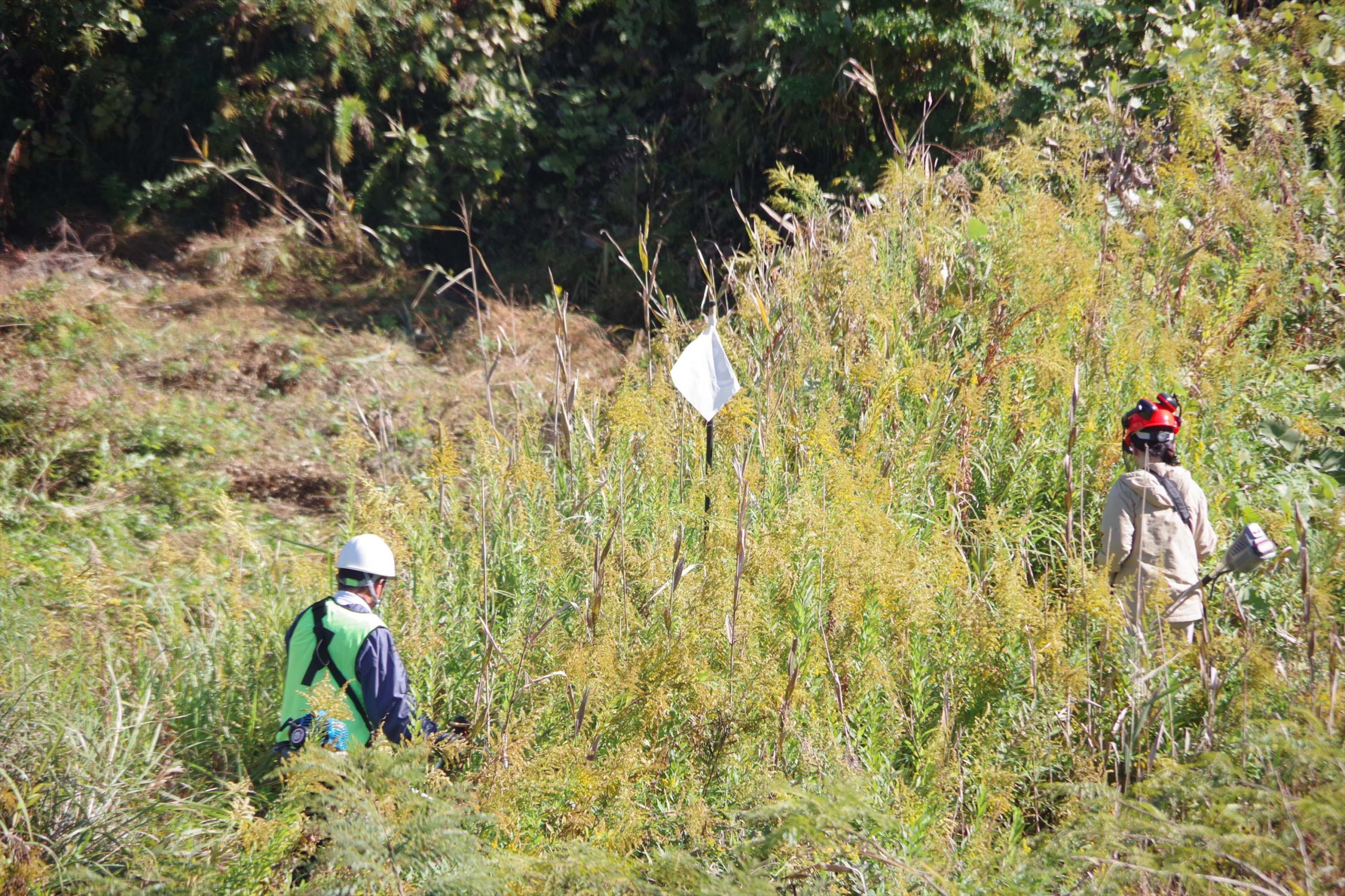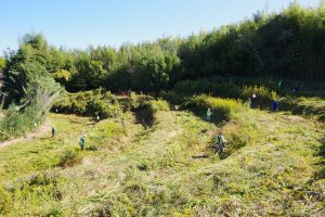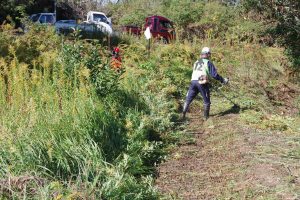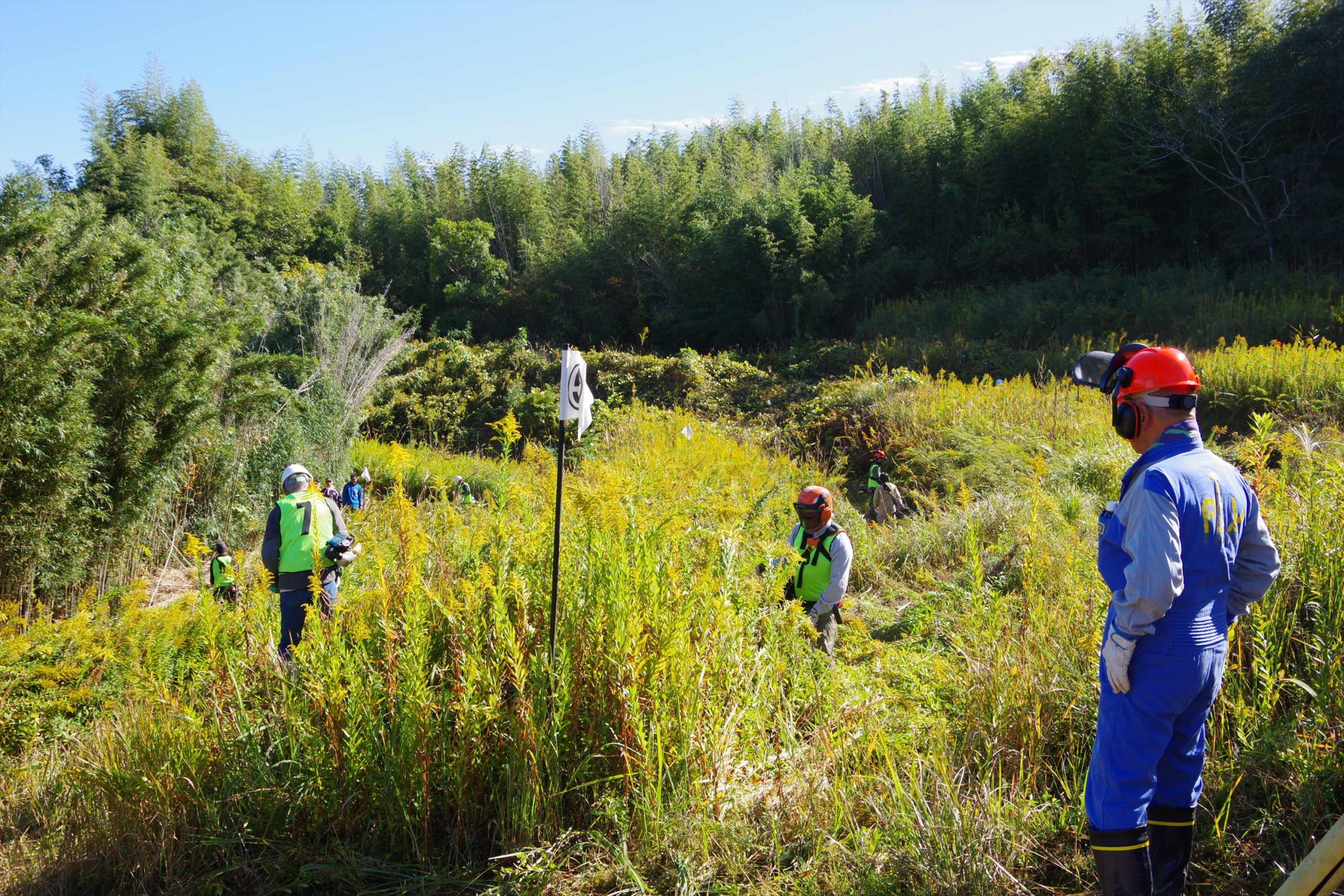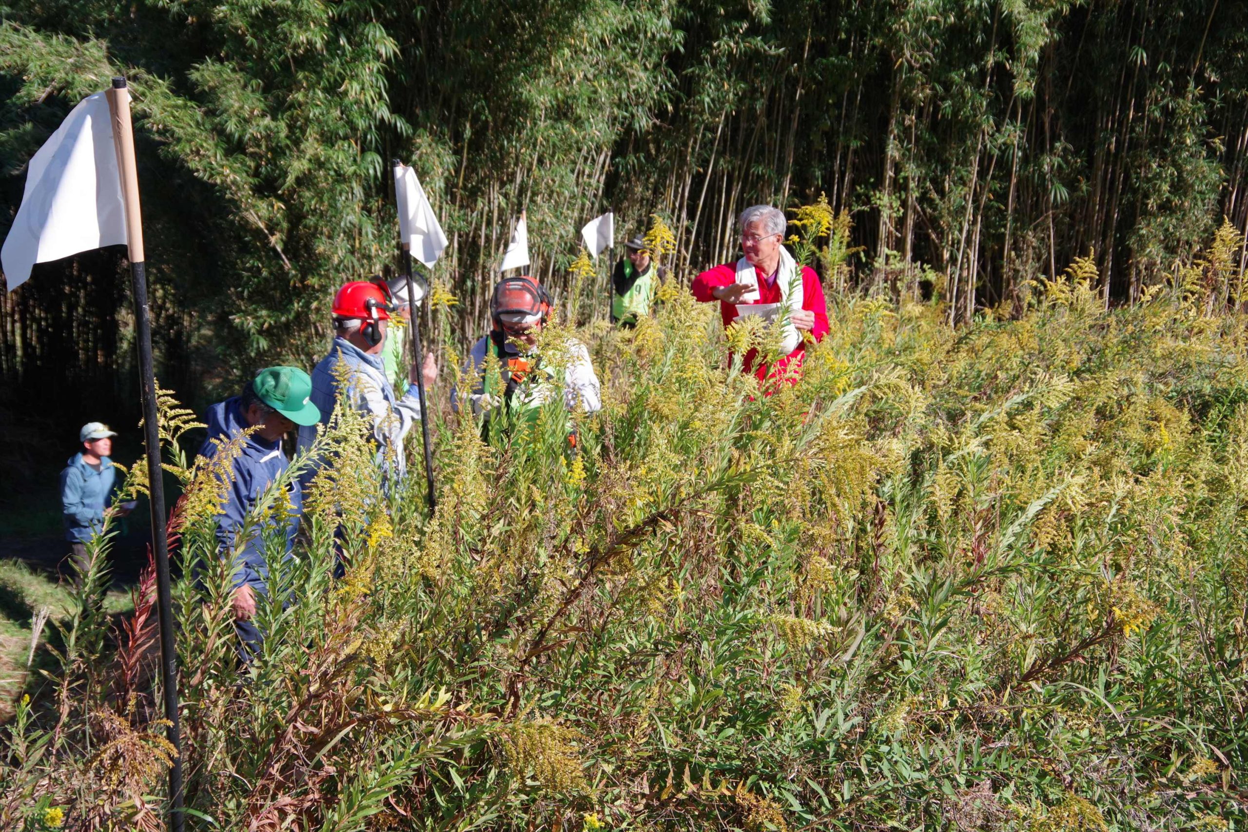一般参加枠では男女22歳~77歳と、今年も幅広い層の方々が参加してくれました。元気よく育ってしまったセイタカアワダチソウを中心とした草を、チームの2人が交代で刈っていきます。約4000平米の草刈りを1時間ほどで終えました。
