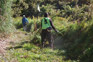 ※会場は草木が茂り、足場のぬかるみや、斜面もあります。また、刈った草が飛び散る場合もあります。服装は丈夫な長袖・長ズボンが必須です。その他、マスクや帽子、軍手、長靴または防水シューズ、首にタオルを巻くなど、できるだけ肌が露出しないようにご準備ください。